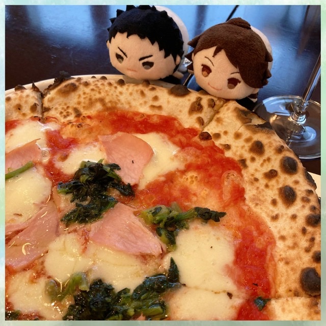 ピザは窯焼きピザなのであつあつ!トマトソースもたっぷりで美味しい
