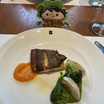 魚はマダイのソテー 2種のソース(ソースの色がダンちゃんの推しだなぁって思った)