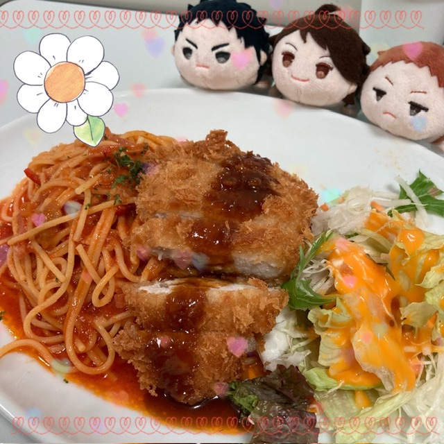 ナポリタンもトマトソース感強めで美味しいし、何よりトンカツがサクサクでめちゃくちゃうまーーーい![]()