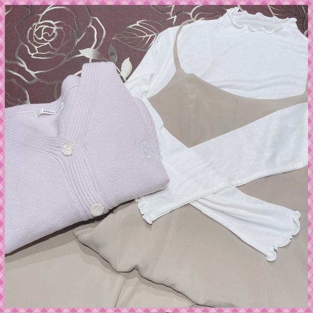 ラベンダーカラーのカーディガン