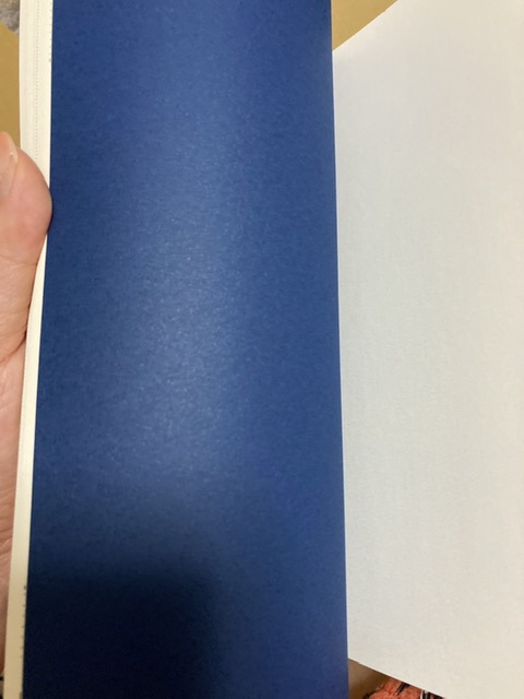 ペルーラ×マットPPで高級感のあるきらめき。中表紙は背表紙と合わせて群青に。