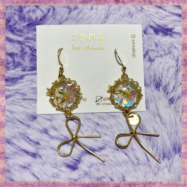 手作りのピアスでとても繊細で可愛いです。付けるとテンションあがる~~